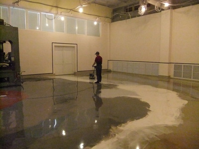 Произвести защиту бетонных полов с применением современных отделочных износостойких материалов. Объем помещения 360 кв. м.